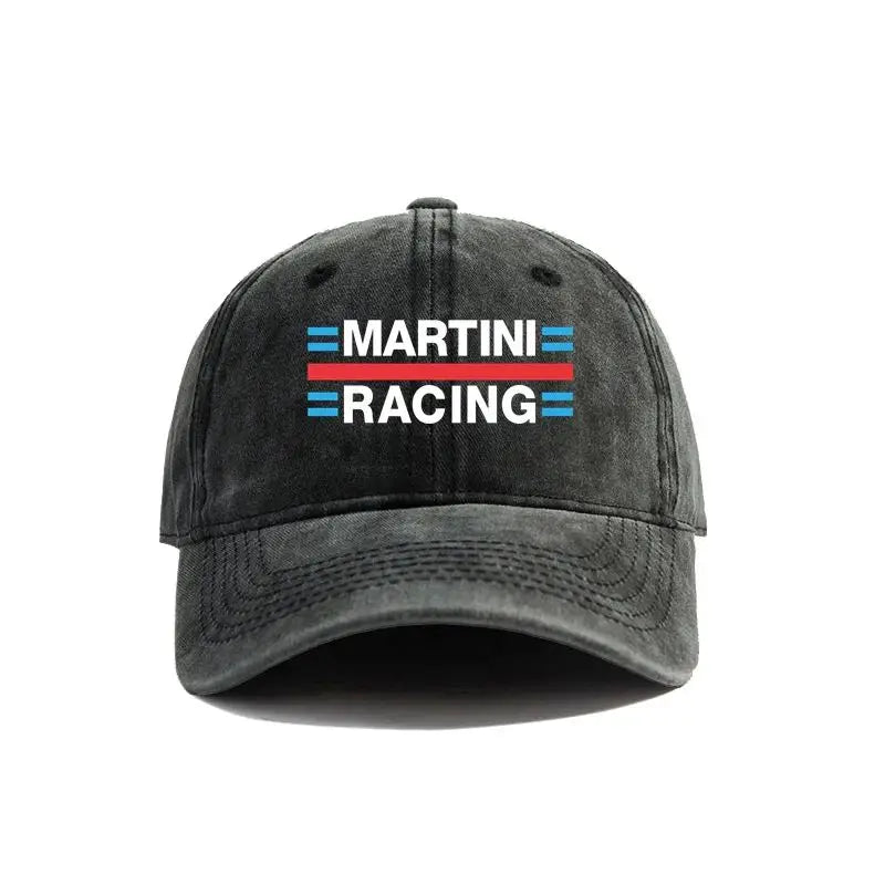 A washed-look cap inspired by iconic racing heritage, finished with Martini Racing lettering for a clean, retro aesthetic.